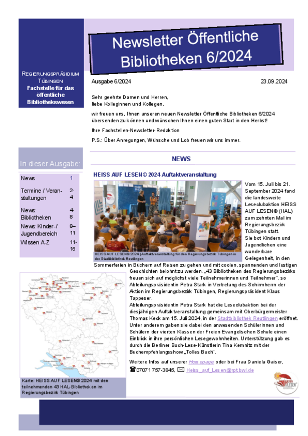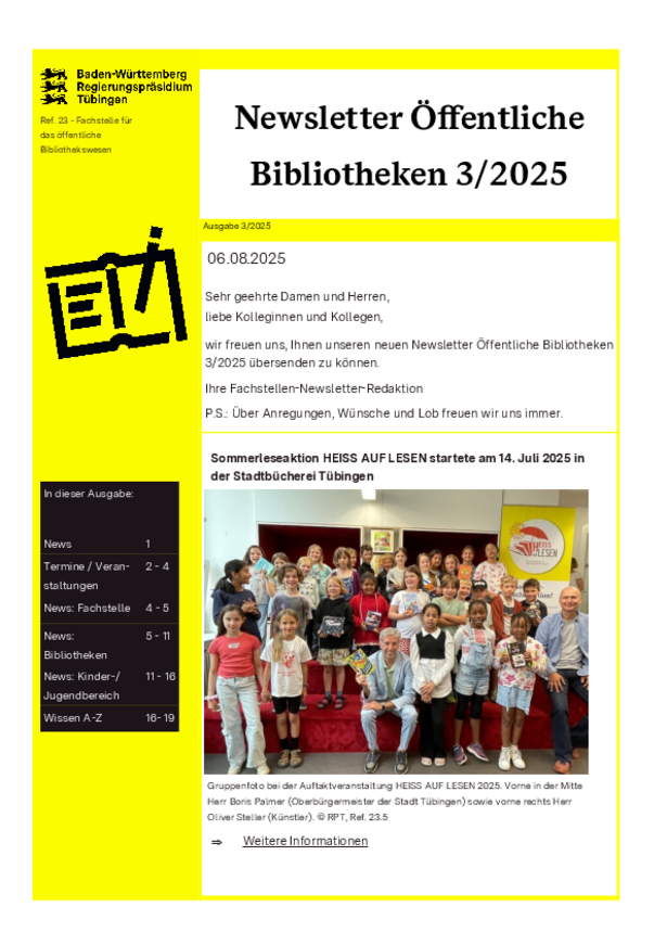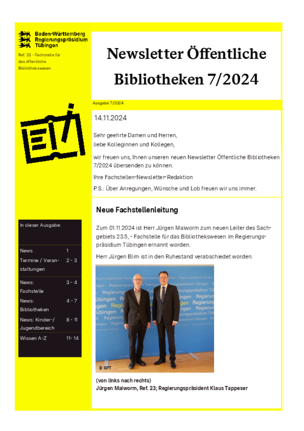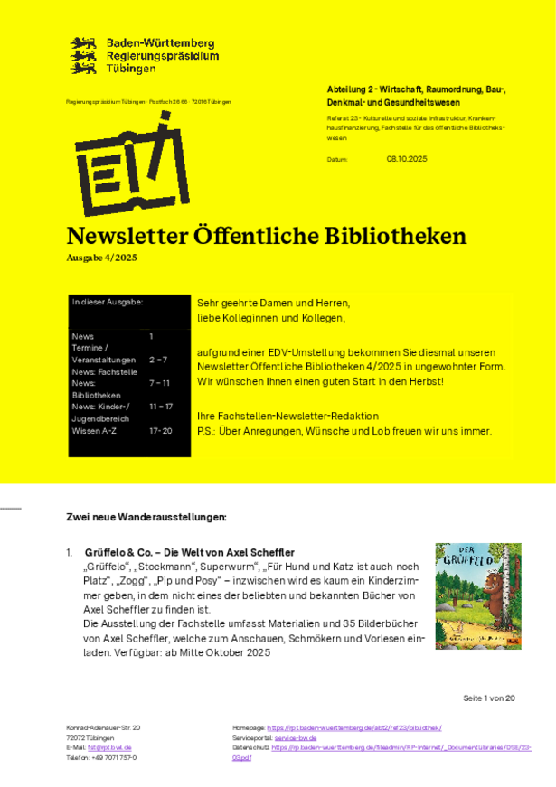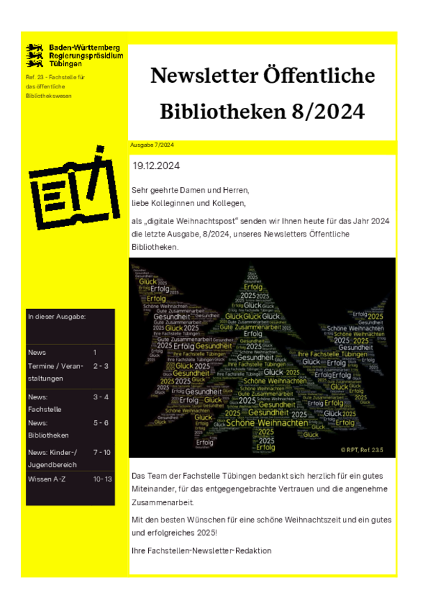 Herausgegeben vom Regierungspräsidium Tübingen - Fachstelle für das öffentliche Bibliothekswesen.