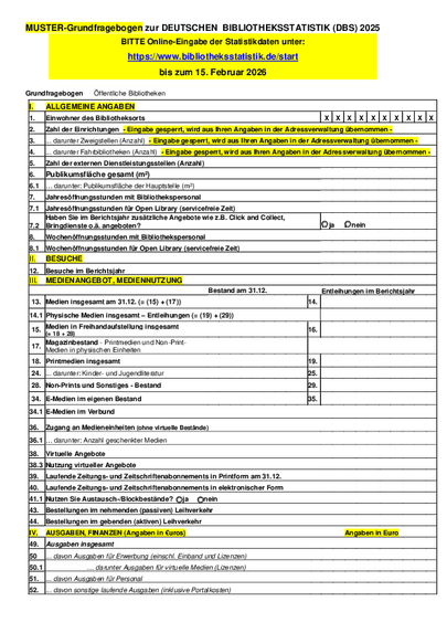 Die Deutsche Bibliotheksstatistik (DBS) enthält alle wichtigen Daten zu Bibliotheken. Sie dokumentiert die Arbeit von Bibliotheken auf nationaler Ebene.