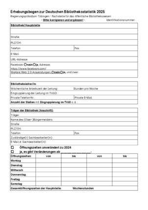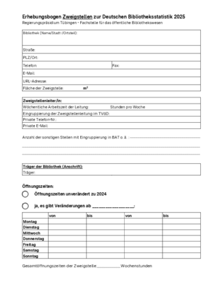 Weitere statistischen Angaben oder Zahlen zum Öffentlichen Bibliothekswesen im Regierungsbezirk Tübingen erhalten Sie auf Anfrage: 07071 757-3823 oder per E-Mail