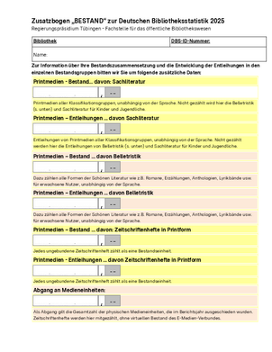 Statistische Daten. Öffentliche Bibliotheken im Regierungsbezirk Tübingen: