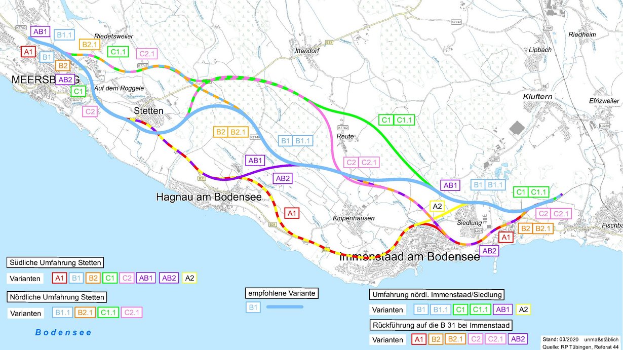 Von 2015 bis 2023 arbeitete das Regierungspräsidium Tübingen intensiv an der Planung der B 31 neu zwischen Meersburg und Immenstaad. Nach einem intensiven Planungsprozess hat das Bundesministerium für Digitales und Verkehr (BMDV) im Jahr 2021 der Variante B1 zugestimmt. Im Jahr 2022 haben das BMDV und das Fernstraßen-Bundesamt bestätigt, dass für die Vorzugsvariante B1 eine neue Linienbestimmung nach § 16 FStrG erforderlich ist.