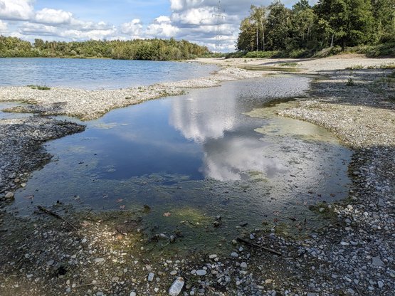 Die Kiesufer – insbesondere dort, wo sie flach ausgeformt sind – ähneln natürlichen Lebensräumen in Flussauen. Während dort die Dynamik der Flüsse offene Kiesflächen erhält, werden die Ufer am Südsee durch gezielte Gehölzentfernung und Beweidung offen gehalten. So können hier Arten wie der Flussregenpfeifer brüten, Watvögel wie der Waldwasserläufer rasten und zahlreiche Laufkäferarten – bislang wurden 25 Arten nachgewiesen – geeignete Lebensräume finden.